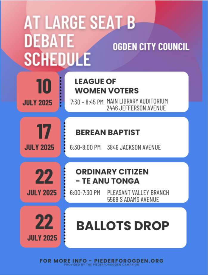 Come hear different ideas presented. Hopefully you will emerge with a better understanding of which policies will build social power in Ogden.